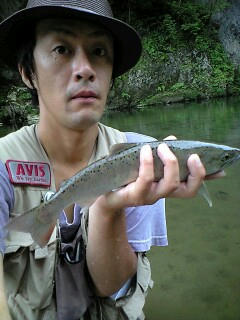 本日は中流域にて捕獲しましたヤマメちゃん 32センチです。ルアーはメトロトラウト シンキング